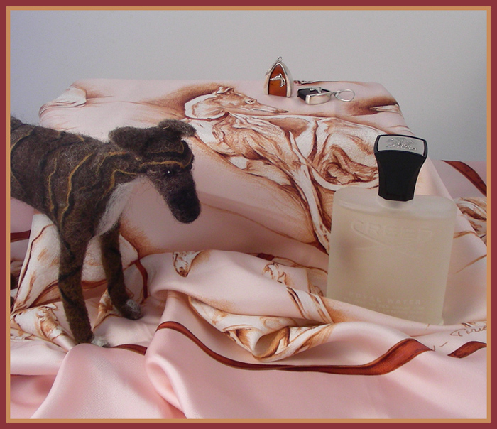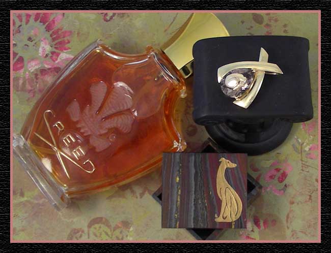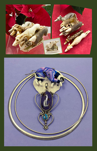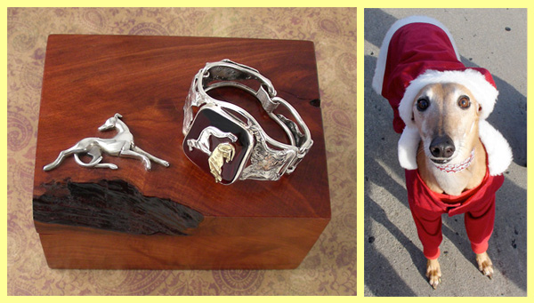 For larger photo examples of Holly Yashi's delicate flowers on nobium, visit their website and click on The Bella Rosa Collection- you won't find any there, however, with greyhounds on them!