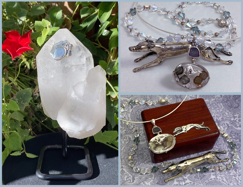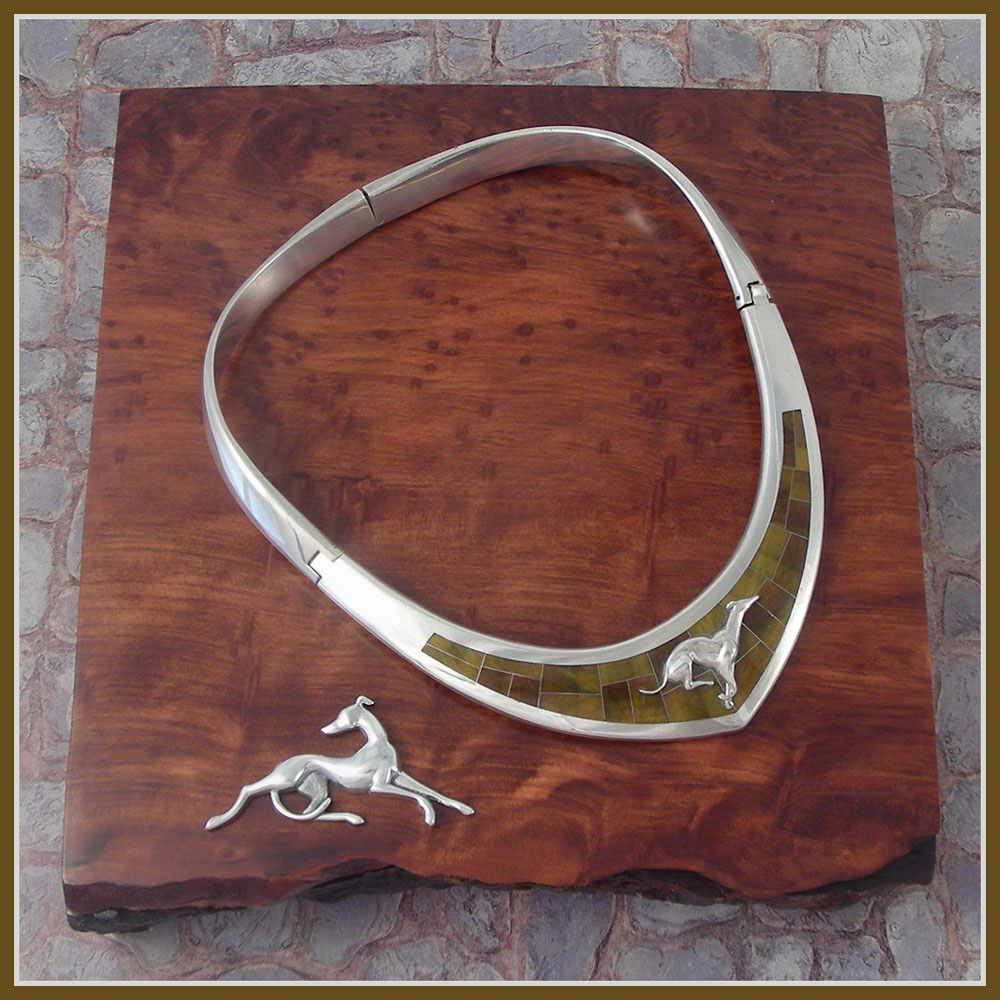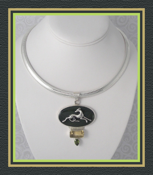 This Holly Yashi necklace and bracelet are valued at $615 before the greyhounds were added just for this raffle. The greyhound adornments are sufficiently subtle and these pieces so unique, that your jewelry will be admired by everyone, whether or not you're in greyt company!