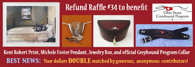 As always, every dollar spent on raffle tickets will be contributed to this organization; Northcoast Greyhounds absorbs all costs including raffle items, insured shipping, PayPal and Credit Card charges.