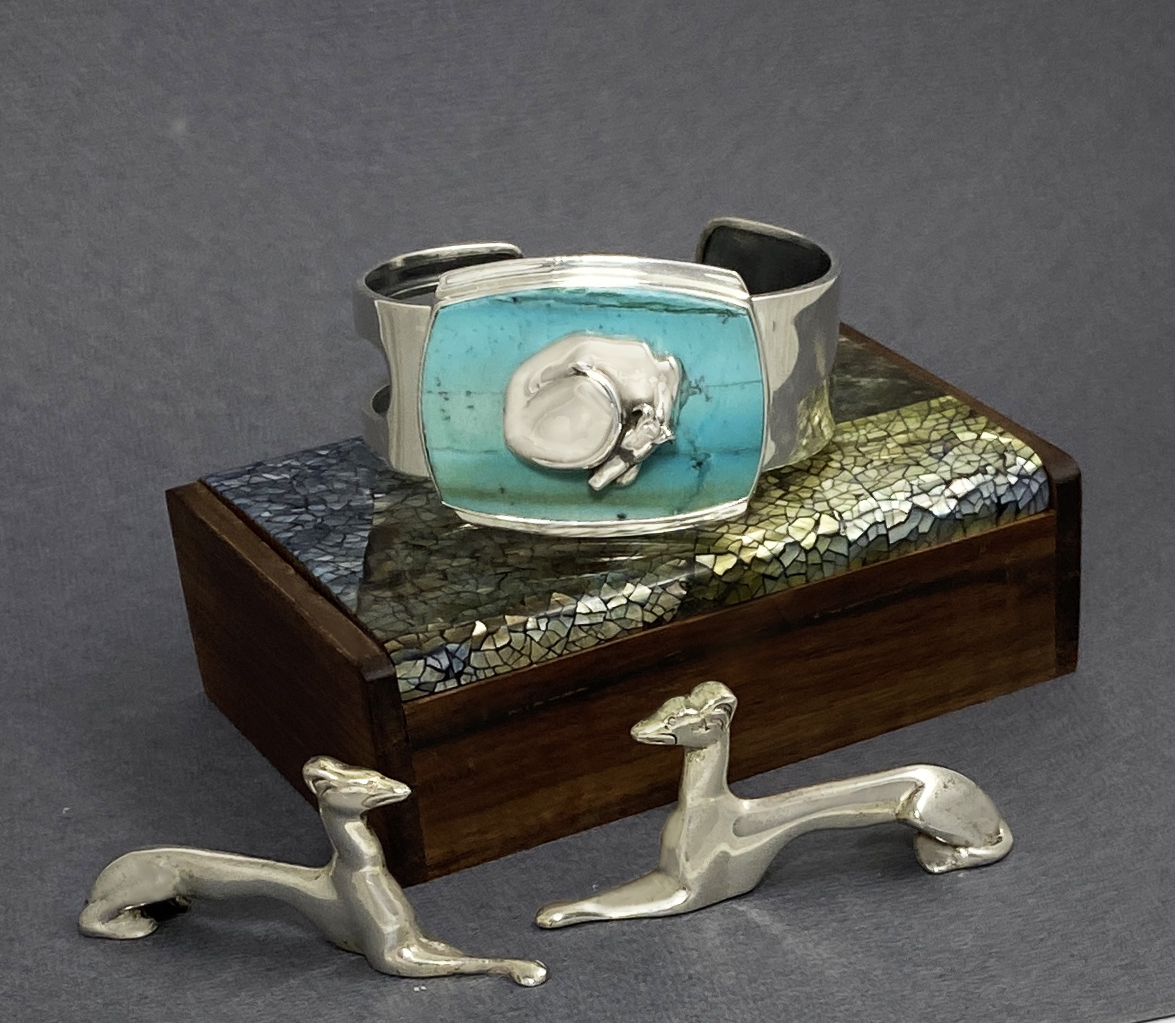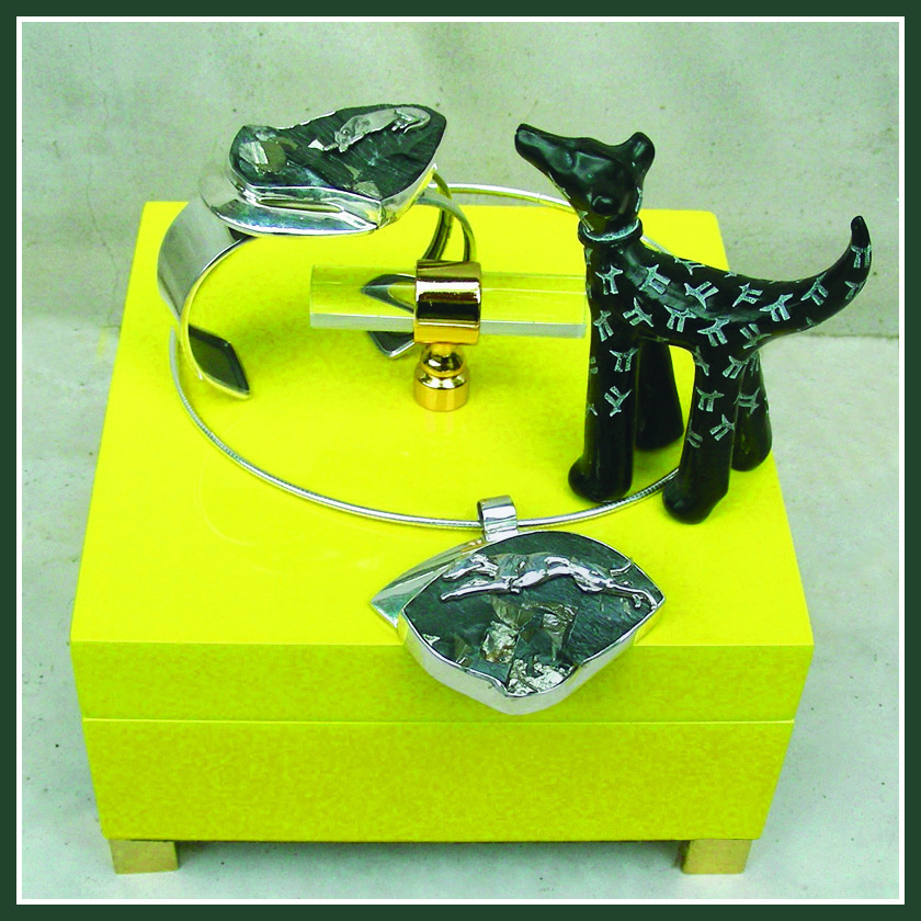 Our celebration for them involves this unique Mice In Slate bracelet and pendant pair, with chains to wear the pendant two different ways, and an adorable little ceramic greyhound to chaperone their trip to your house!