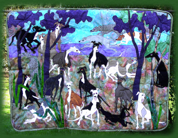 This time, we've added a SECOND PRIZE: a double-sided, four-greyhound tote by fabric artist Susan Lewis!
