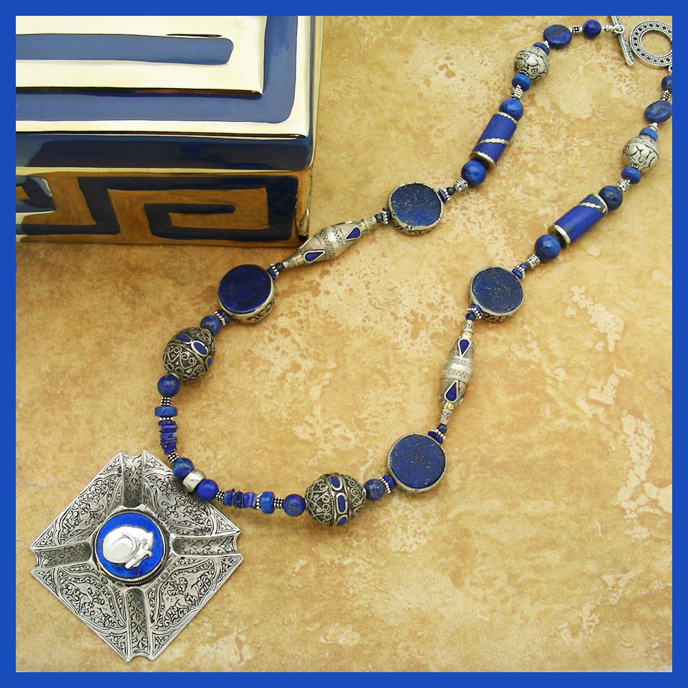 Featuring a new wall-hanging by Susan Lewis Fabric Art and a fabulous 18" sodalite necklace with 2.5" sodalite necklace adorned with our "8Ball".