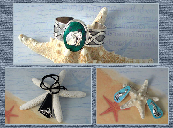 The first event in this new series offers SIX especially created Christmas pendants by Bergitt Helleman. Each pendant is one inch in length (or height), is embellished with a sterling Dave (or 8Ball), and dangles it's own little colorful ornament. Pendants are hung from an 18" sterling snake chain.